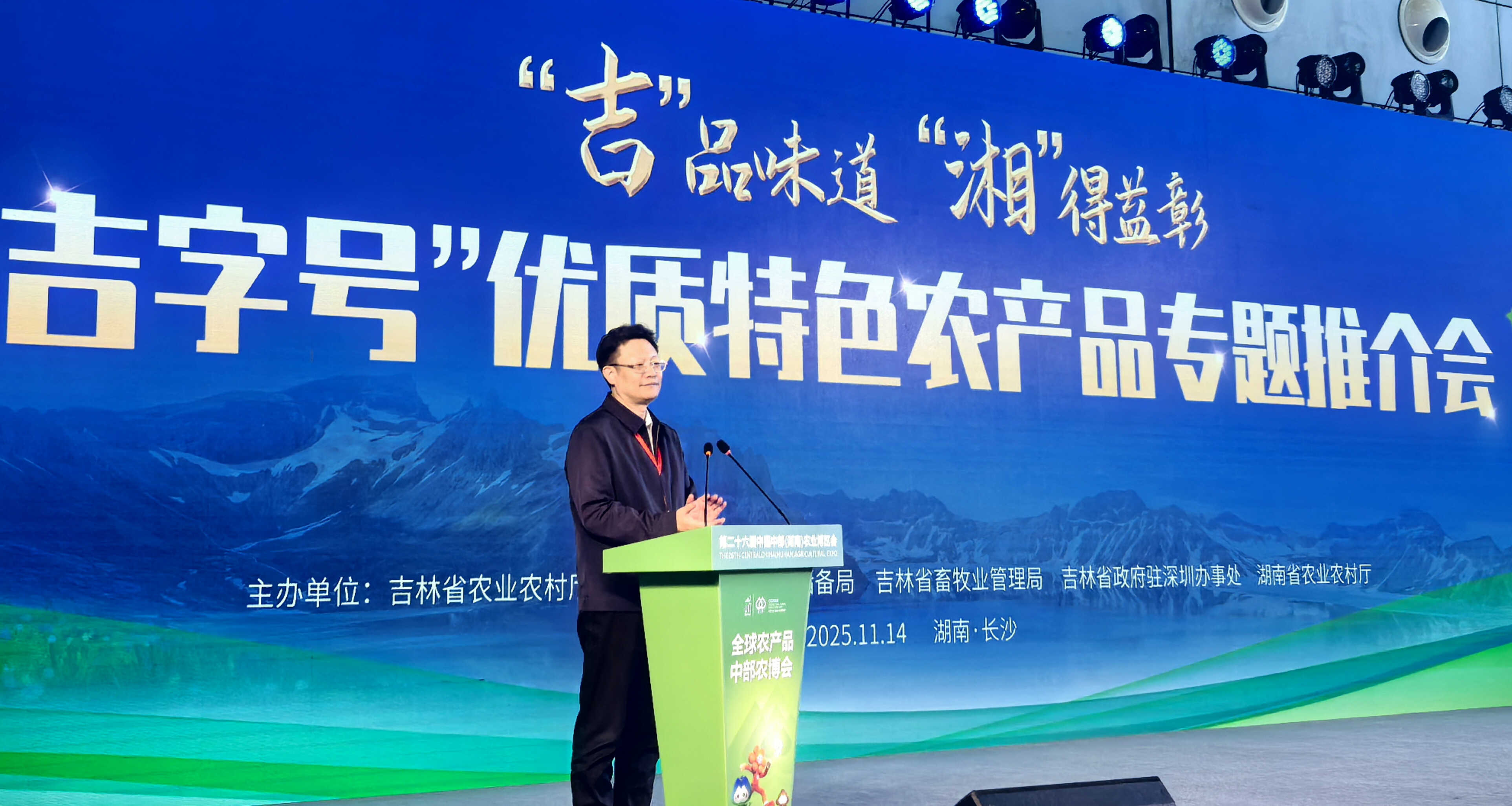 开幕式当天,作为本届农业博览会的重要活动之一,吉林省农业农村厅、吉林省粮食和物资储备局、吉林省畜牧业管理局、吉林省人民政府驻深圳办事处和湖南省农业农村厅联合举办了“吉”品味道 “湘”相得益彰—“吉字号”农产品专题推介会。吉林省农业农村厅厅长刘翔宜主持推介会。