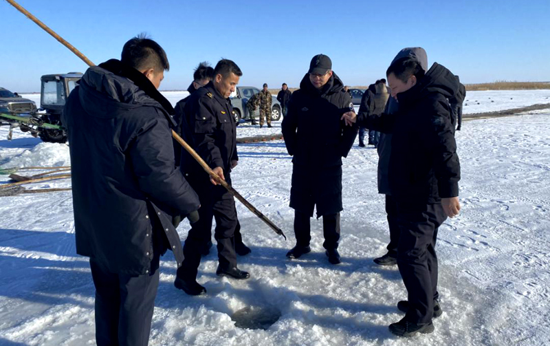 为贯彻落实《农业农村部办公厅关于切实加强岁末年初渔业安全生产工作的紧急通知》相关要求,防范遏制重特大安全生产事故的发生,12月26日—27日,吉林省农业农村厅副厅长王唯涌带队,先后对镇赉县国营渔场、大安市月亮泡水库和松原市查干湖开展了渔业冬捕前安全生产检查。