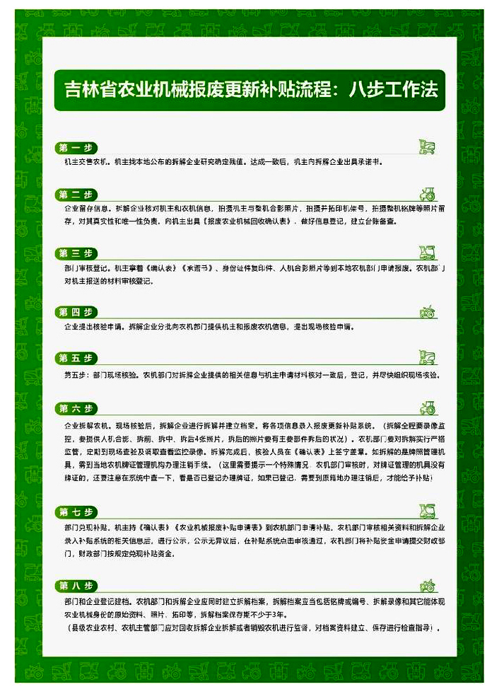 政策解读:吉林省农业机械报废更新补贴政策八步工作法