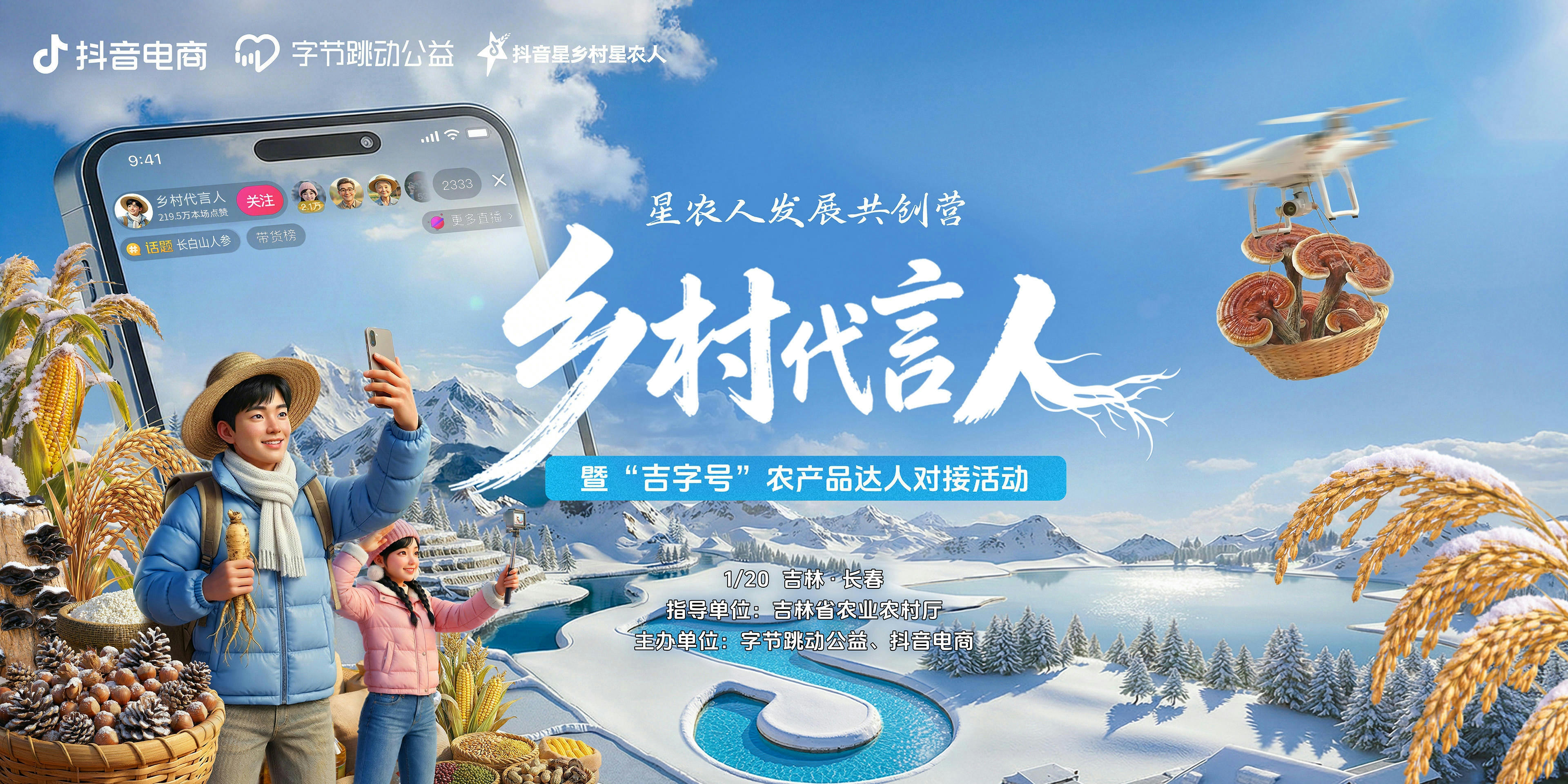 近日,由吉林省农业农村厅指导,字节跳动公益、抖音电商联合主办的乡村代言人——星农人发展共创营(吉林站)暨“吉字号”农产品达人对接活动在长春市圆满落幕。活动以1月19日实地采风为序曲,1月20日正式活动为核心,聚焦“农产品上行”主线,通过多元形式搭建政企、达人、平台联动桥梁,为吉林乡村产业发展注入强劲动能,取得了预期成效。