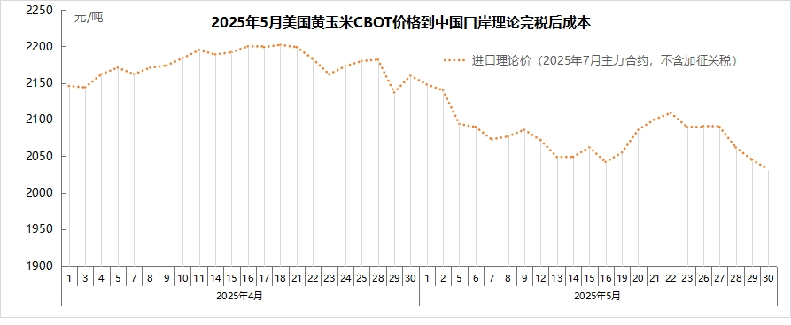 5月10日至11日,中美经贸高层会谈取得实质性进展,大幅降低双边关税,美方取消了共计91%的加征关税,中方相应取消了91%的反制关税;美方暂停实施24%的“对等关税”,中方也相应暂停实施24%的反制关税;剩余10%的关税予以保留。关税下调后,中美贸易冲突趋于缓和,但加征关税后的美进口玉米价格仍然不具备比较优势。