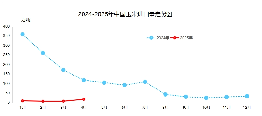5月,每吨美国黄玉米cbot价格到中国口岸理论完税后成本(不含加征关税)为2032-2148元,进口价格重心整体下移。4月,我国玉米进口量为18万吨,环比上涨125.8%,同比下降84.5%。1-4月,我国玉米累计进口量为44万吨,同比下降95.1%。